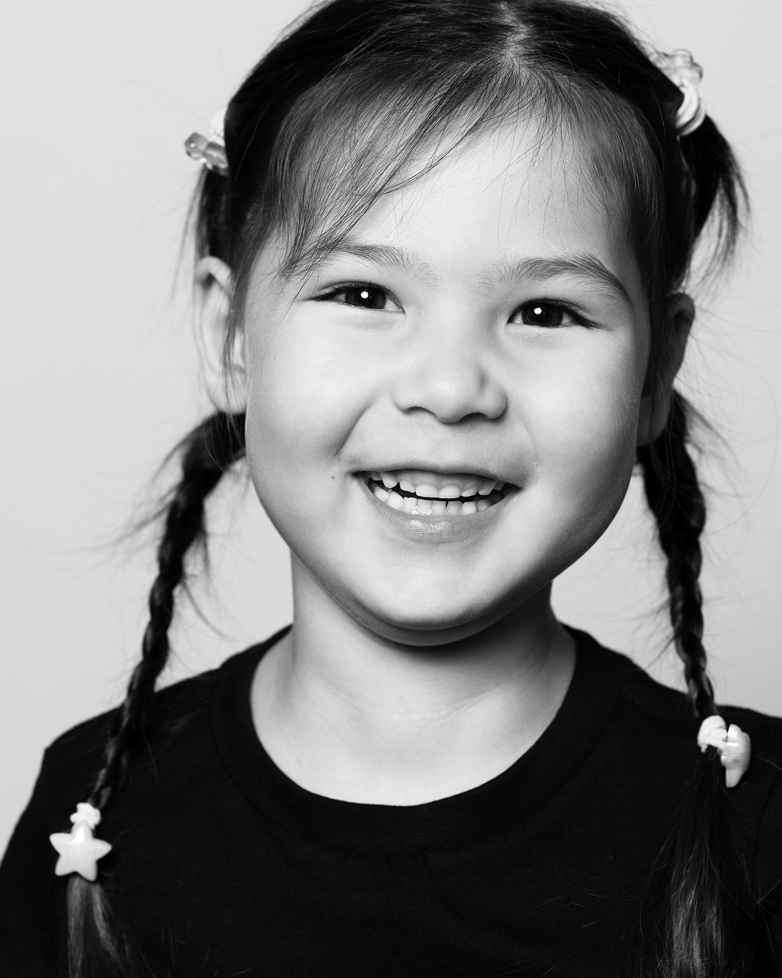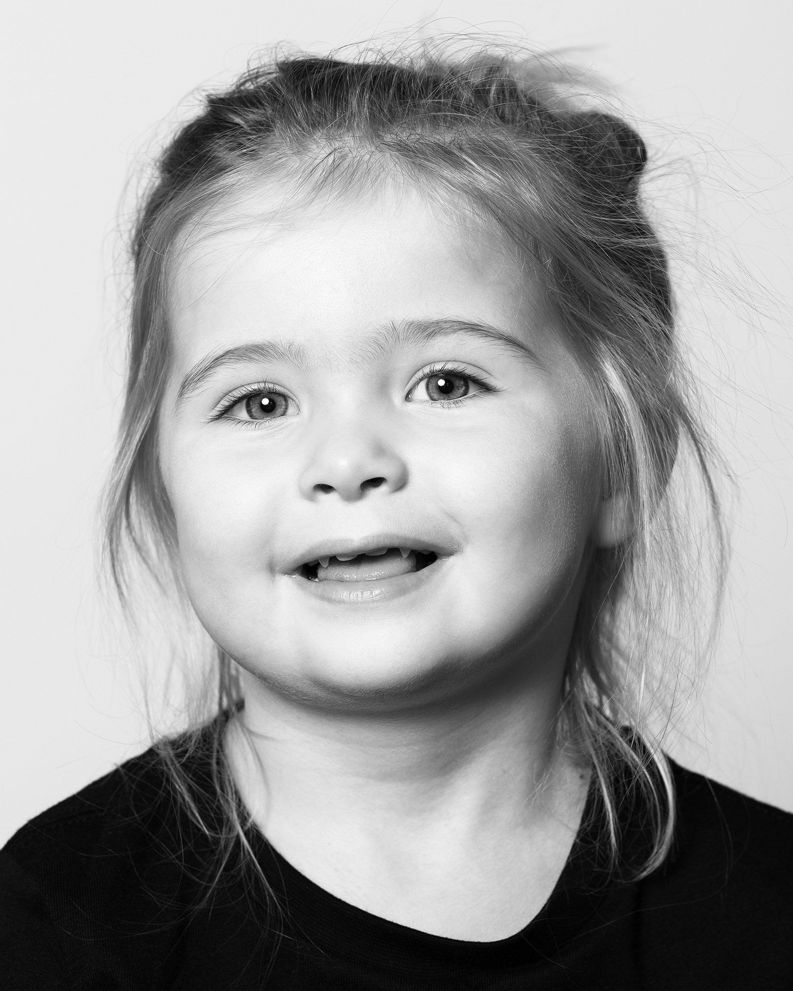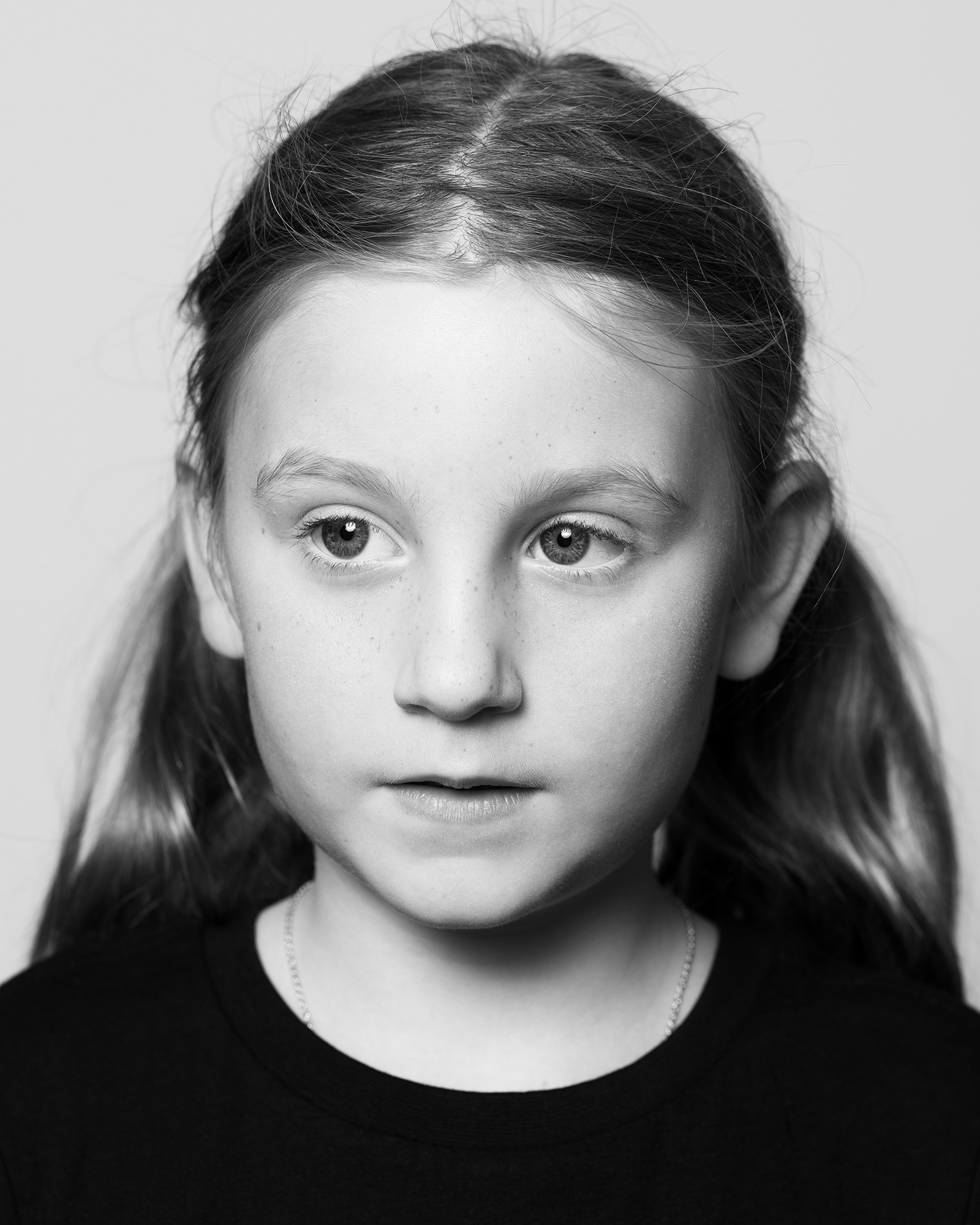 Contemporary black-and-white portraits of children.