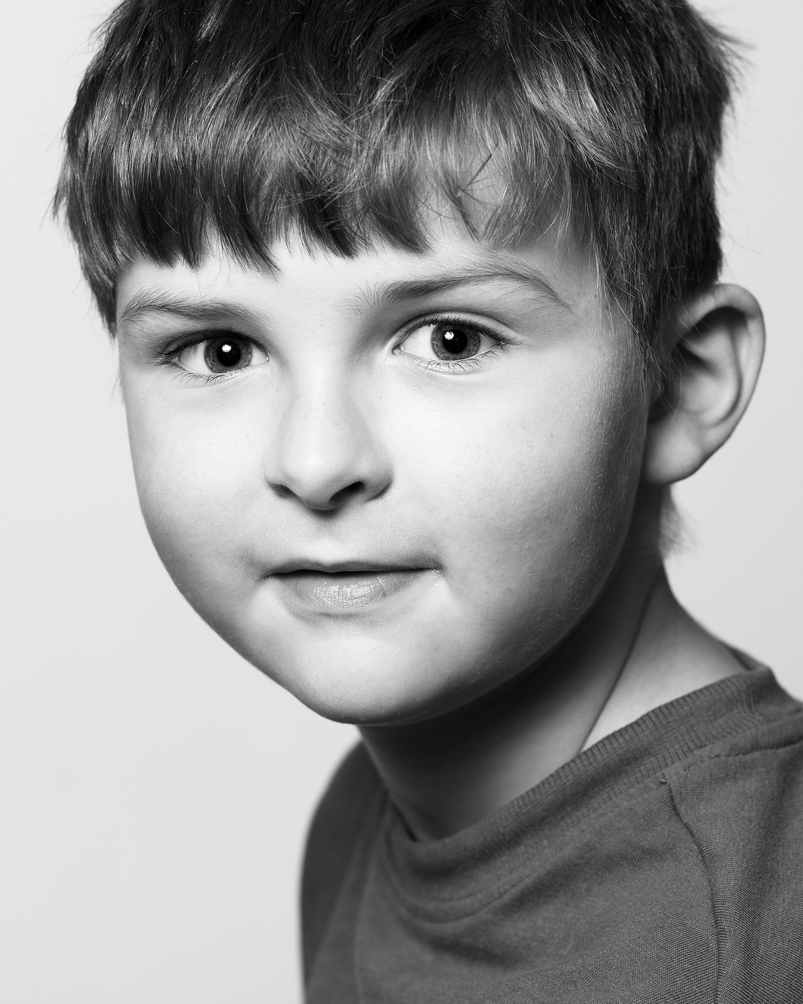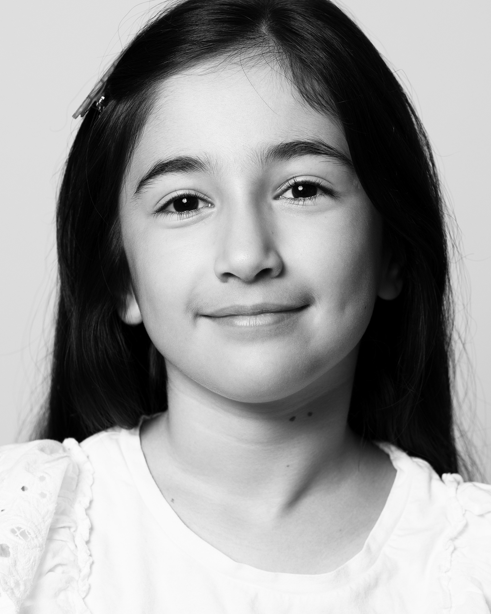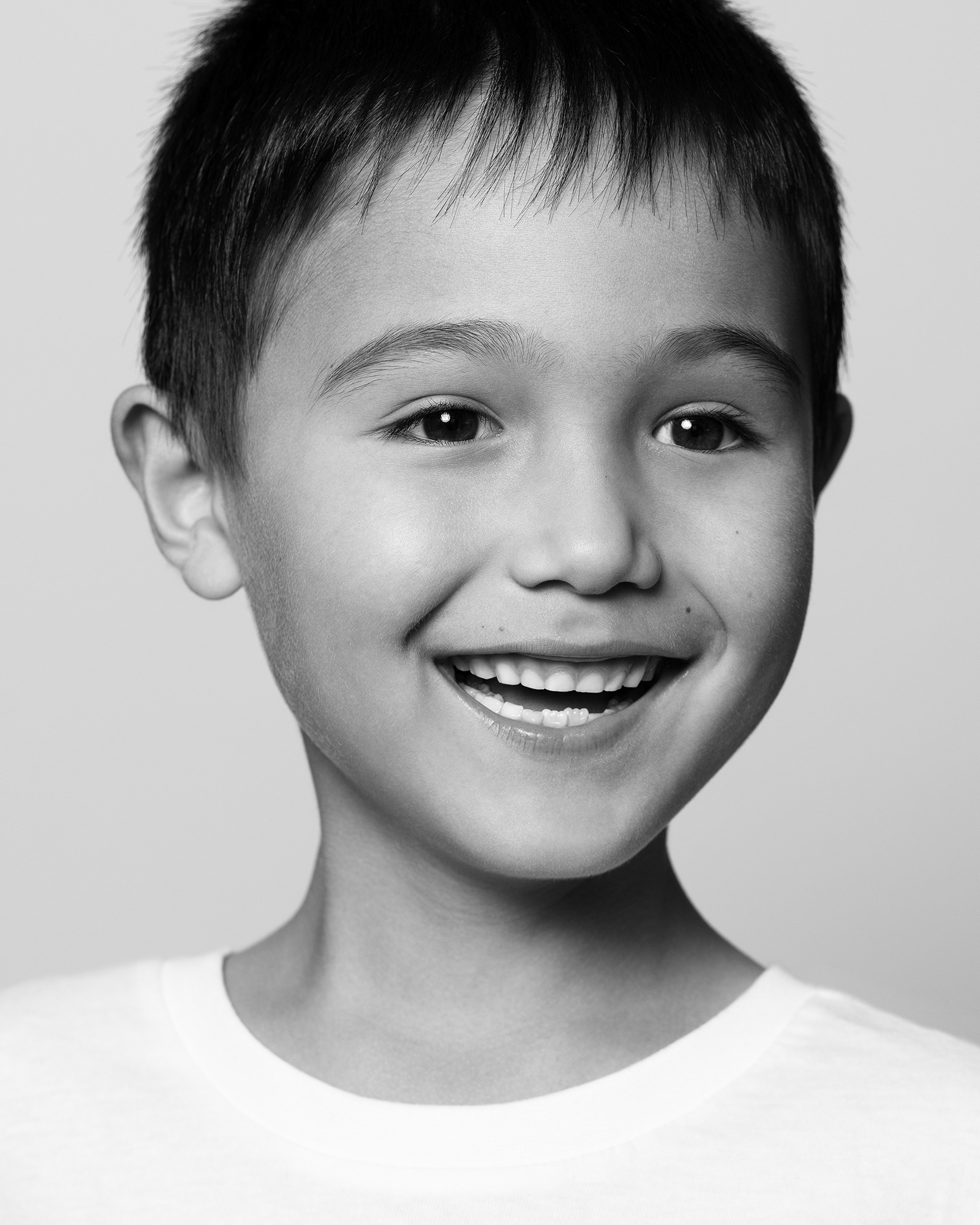 Contemporary black-and-white portraits of children.